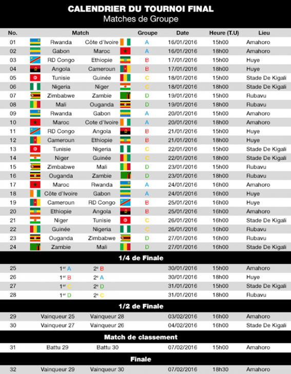 A 2016-os torna házigazdája Ruanda lesz, ahol 22 évvel a világtörténelem egyik legkegyetlenebb és legvéresebb polgárháborúja után az ország első jelentős sporteseményének megrendezésével igyekszik egy újabb lépést tenni helyzetének és nemzetközi kapcsolatainak konszolidációjában. Ruanda három hivatalos nyelve (az angol, a francia és a kinyarwanda) révén mára a frankofón közösségnek és a brit nemzetközösségnek is tagja, szomszédjaival a korábbi feszült viszony rendeződött, a jelenlegi államfő, a '94-es mészárlásokat leállító csapatok vezetője, Paul Kagame miniszterelnök pedig viszonylagos népszerűségnek és széles körű támogatottságnak örvend mind a tutsi, mind a hutu lakosság körében, még ha 2000 óta tartó kormányzása és kétszeri újraválasztása ad is alapot kritikára az európai politikai rendszerek szemszögéből.
